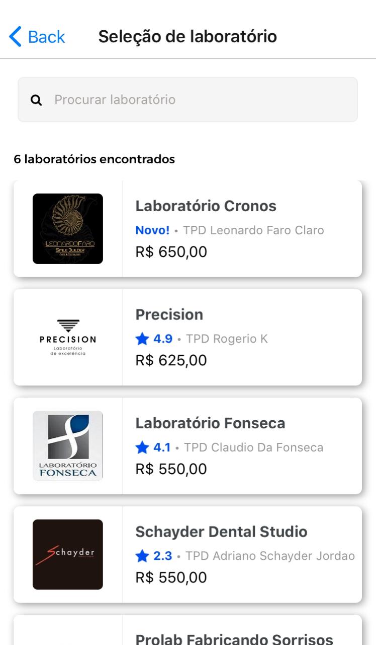 O app – um para o dentista (Android, iOS) e outro para o laboratório (Android, iOS) – possui inteligência artificial e machine learning, de modo que, com o tempo, é capaz de entender o perfil do odontologista para saber qual o preço ele está disposto a pagar, seu prazo de entrega etc.