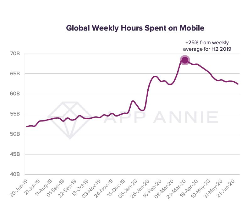 App Annie também analisou as compras com dispositivos móveis durante o primeiro semestre de 2020 e detectou um aumento durante os tempos de isolamento social ocasionado pelo novo coronavírus, ultrapassando inclusive as vendas de fim de ano. O comércio eletrônico cresceu a ponto de alcançar o que normalmente levaria entre quatro e seis anos.